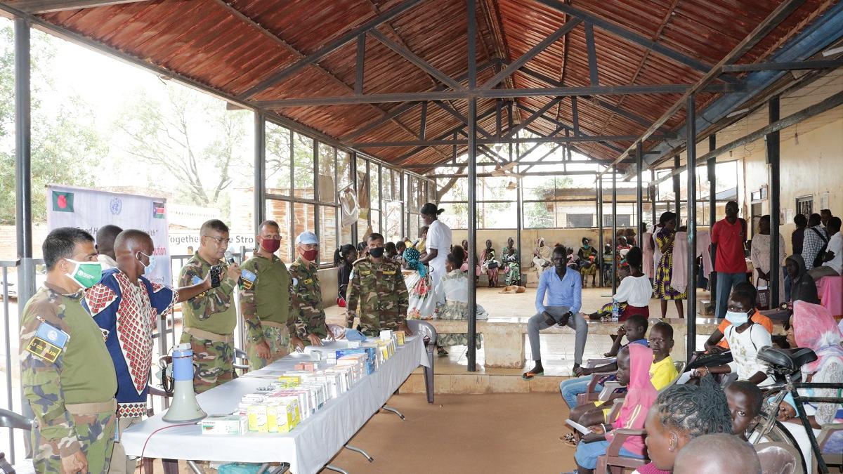 The Bangladeshi contingent, serving with the United Nations Mission in South Sudan, provided essential drugs for more than 300 people in dire need at the Teaching Hospital in Wau, in the Western Bahr El Ghazel region.