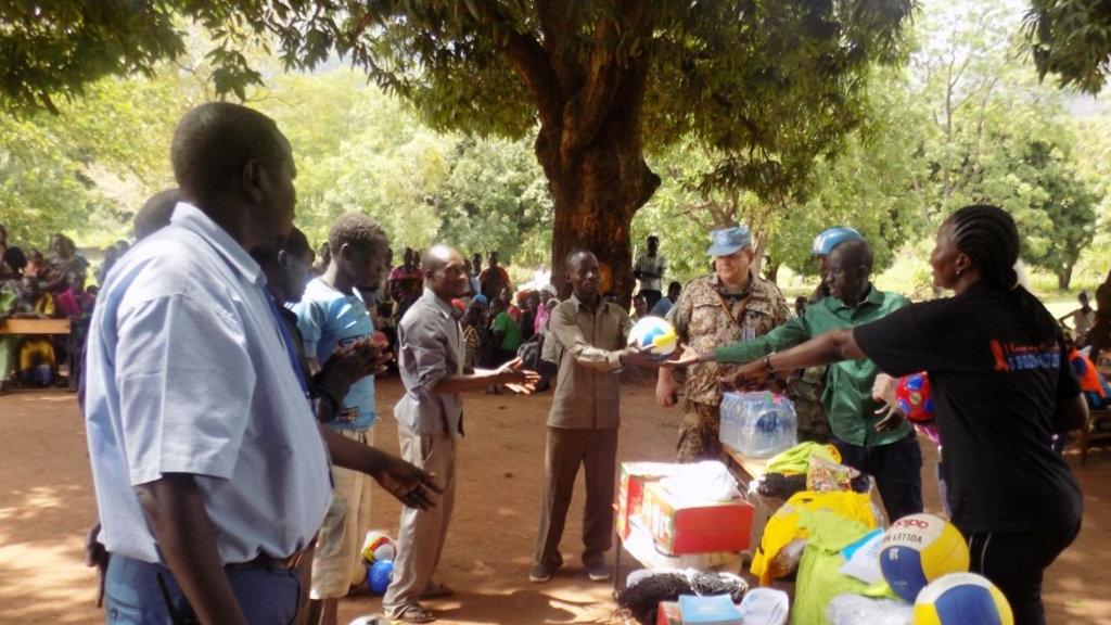 The schools in Katire learned how to play volleyball and demonstrated their football skills as the UNMISS field office in Torit donated sports equipment to foster active participation in playing games to promote peace and unity in the region. The items included volleyballs, footballs, nets, whistles, t-shirts, and caps among other items. The UNMISS has conducted similar activities in Hiyala and Magwi as well as Ngauro, Lotimor and Nanyangachor, in the Kapoeta area.