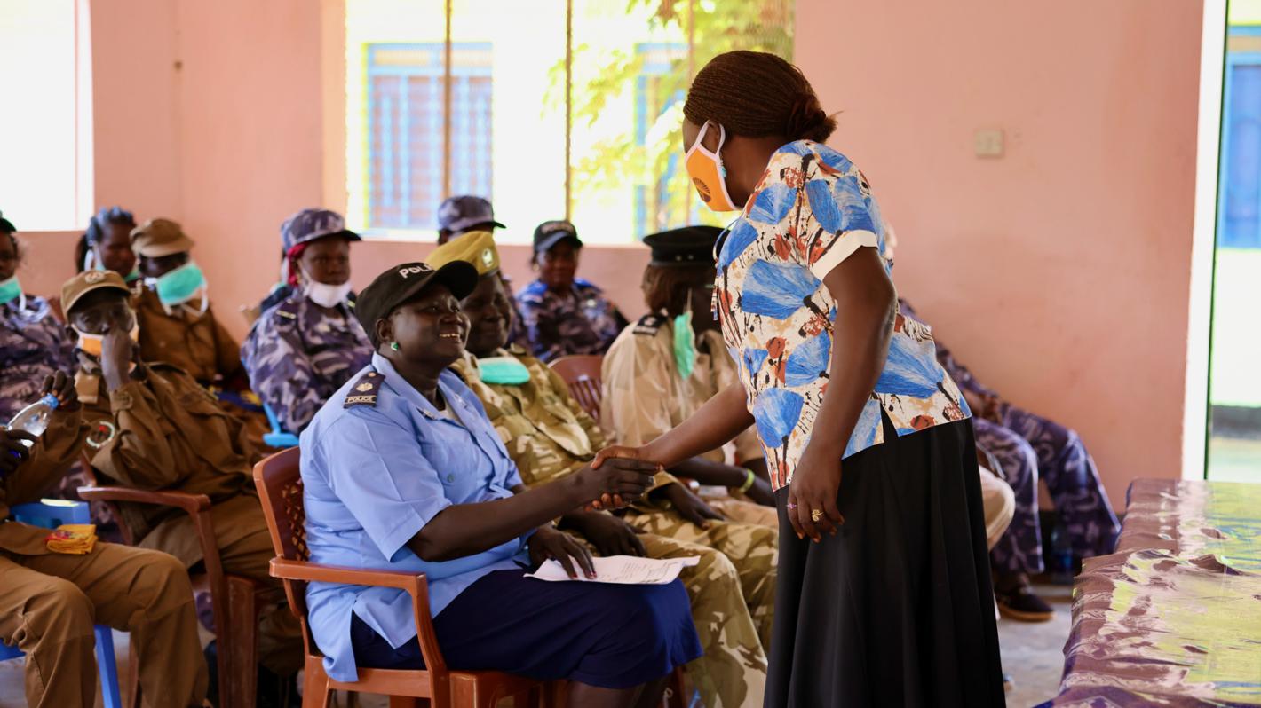 UNPOL officers serving with UNMISS in Warrap recently held a day-long workshop for female policing counterparts from the South Sudan National Police Service to build their capacities in dealing with cases of sexual- and gender-based violence. Photo by Zejin Yin/UNMISS.