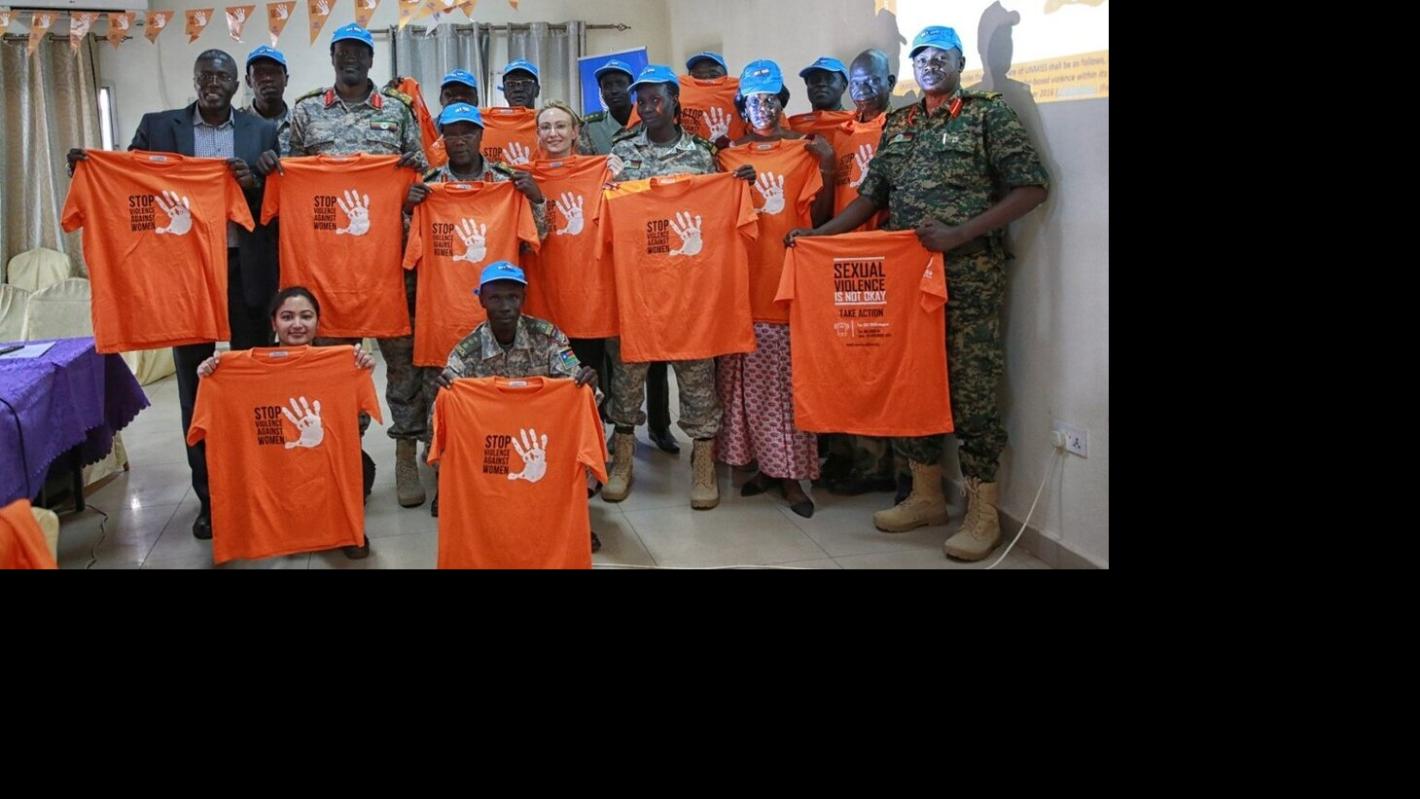 Yashaswini Mittal, a United Nations Volunteer with UNMISS, works as a Judicial Affairs Officer with the mission’s Rule of Law Section. In the picture, Yashaswini and her colleagues hold up t-shirts during the annual commemoration of 16 Days of Activism against Gender-Based Violence in Juba, South Sudan, with Judge Advocates from the Military Justice Directorate of the SSPDF.