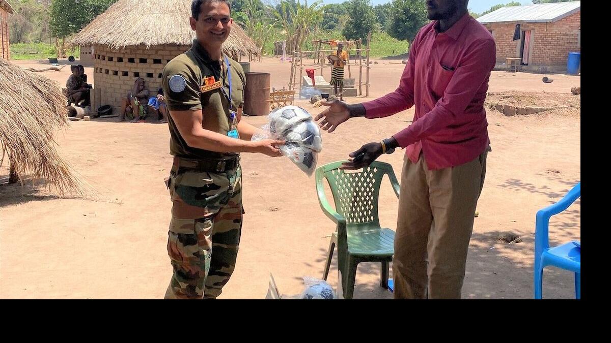 Lieutenant Colonel Vishwanath Channamallappa Gundagi from India, wanting to give children a couple of hours of happiness a day, bought and handed over 100 footballs to boys and girls in Western Equatoria State.
