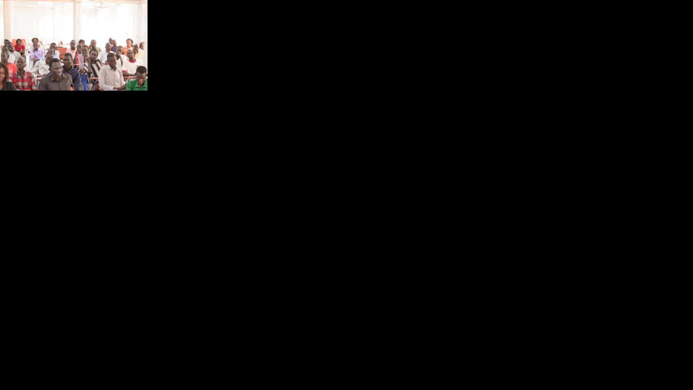 A section of students of the John Garang Memorial University of Science and Technology listen attentively at an UNMISS forum on identity