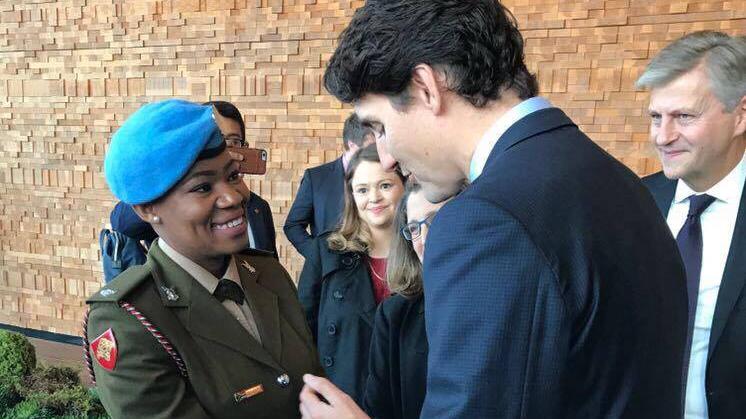 Canadian Prime Minister Justin Trudeau and the Under-Secretary-General for Peacekeeping Operations, Jean-Pierre Lacroix, presented the award to Major Seitebatso Pearl Block as part of the UN Peacekeeping Defence Ministerial taking place from 14-15 November for her outstanding work on the frontlines of UN peacekeeping.