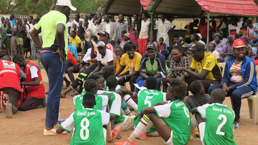 Arek’s female team, Tiger, is playing a match at the Aweil Freedom Square against the best team in the area. Two games have been organized by the United Nations Mission in South Sudan to commemorate International Women’s Day, attracting an enthusiastic crowd of more than a thousand people.