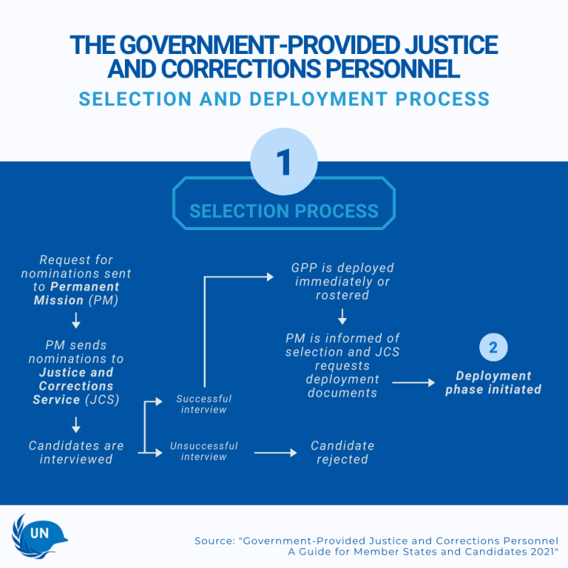 Justice and corrections experts interested in serving as government-provided personnel with United Nations peace operations must be nominated by their governments, specifically their Permanent Missions in New York. We cannot accept applications received directly from individual officers. If you are interested in joining a United Nations peace operation, we recommend you contact your national justice or corrections service and express your interest in being nominated for one of our current calls for nominations.