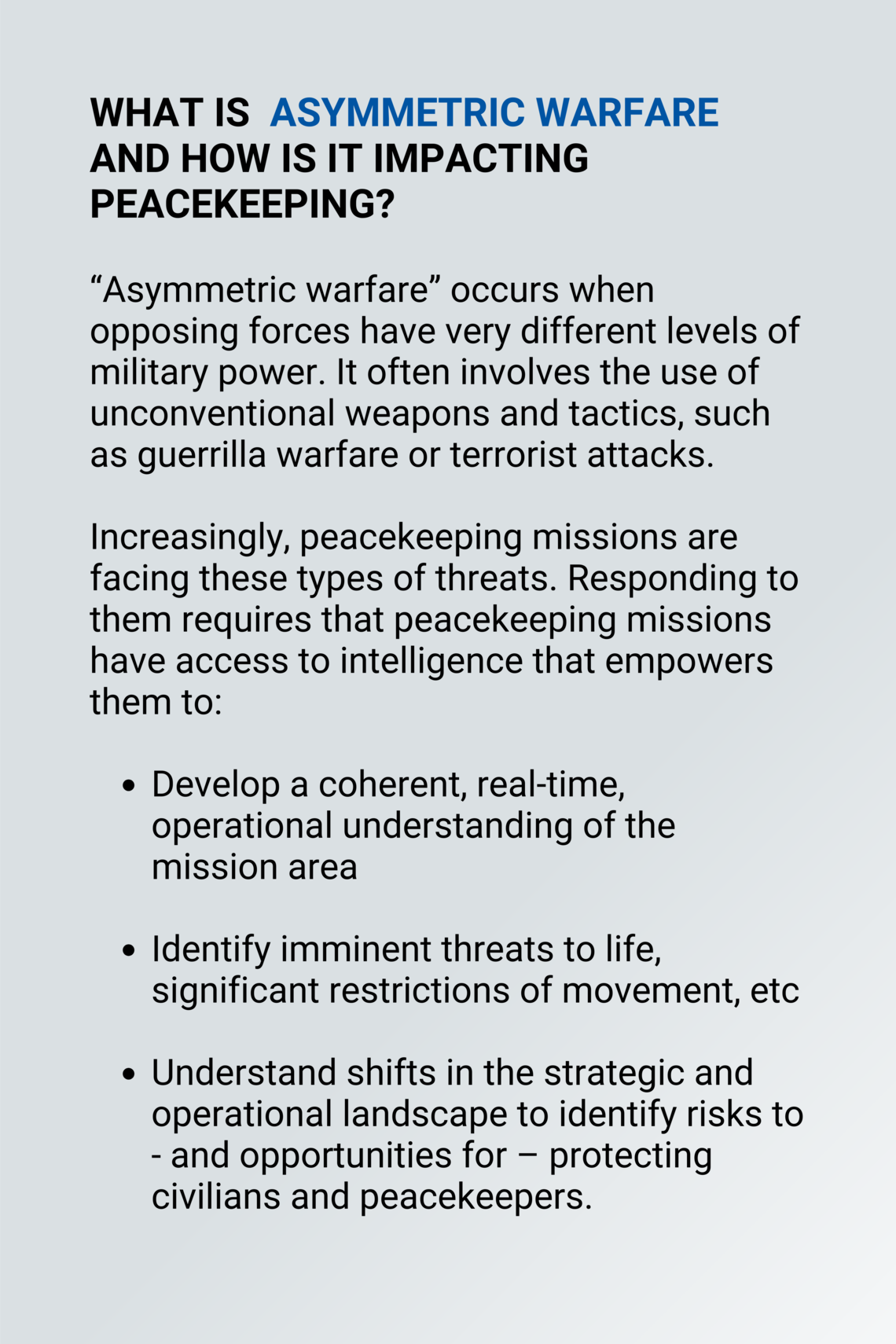 Timely peacekeeping-intelligence allows peacekeepers to better protect civilians – and each other – in increasingly complex and dangerous environments.