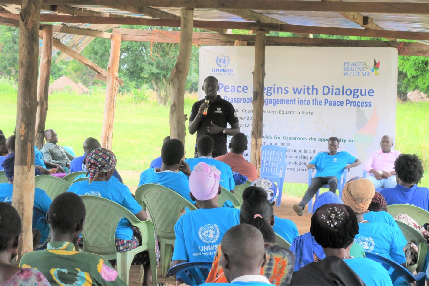 In Central Equatoria, the United Nations Mission in South Sudan (UNMISS) has initiated a "Community Sensitization and Civic Education Campaign" to promote grassroots engagement in political, peace and electoral processes. Photo by Ali Surur/UNMISS.
