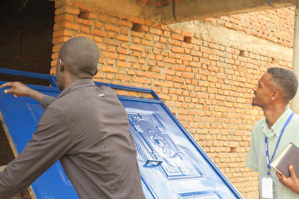 Samuel Cherinet (right) spends a lot of time in the field, here inspecting a construction site where an UNMISS Quick Impact Project is being completed. Photos: Alahayi Nemaya/UNMISS