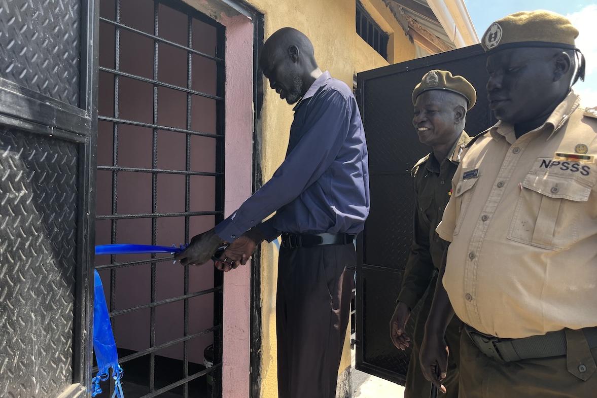 Cutting the ribbon to one of three newly refurbished cell blocks at the Terekeka County Prison, where male, female and juvenile inmates will now be separated. Photos: Blessings Samuel Phumisa/UNMISS