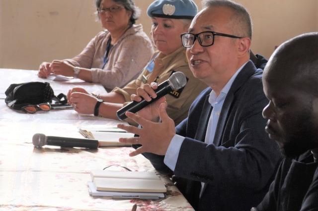 A high-level delegation led by UNMISS Deputy Chief, Guang Cong, meets local communities in Greater Pibor Administrative Area. Photos by Angellah Mandoreba/UNMISS
