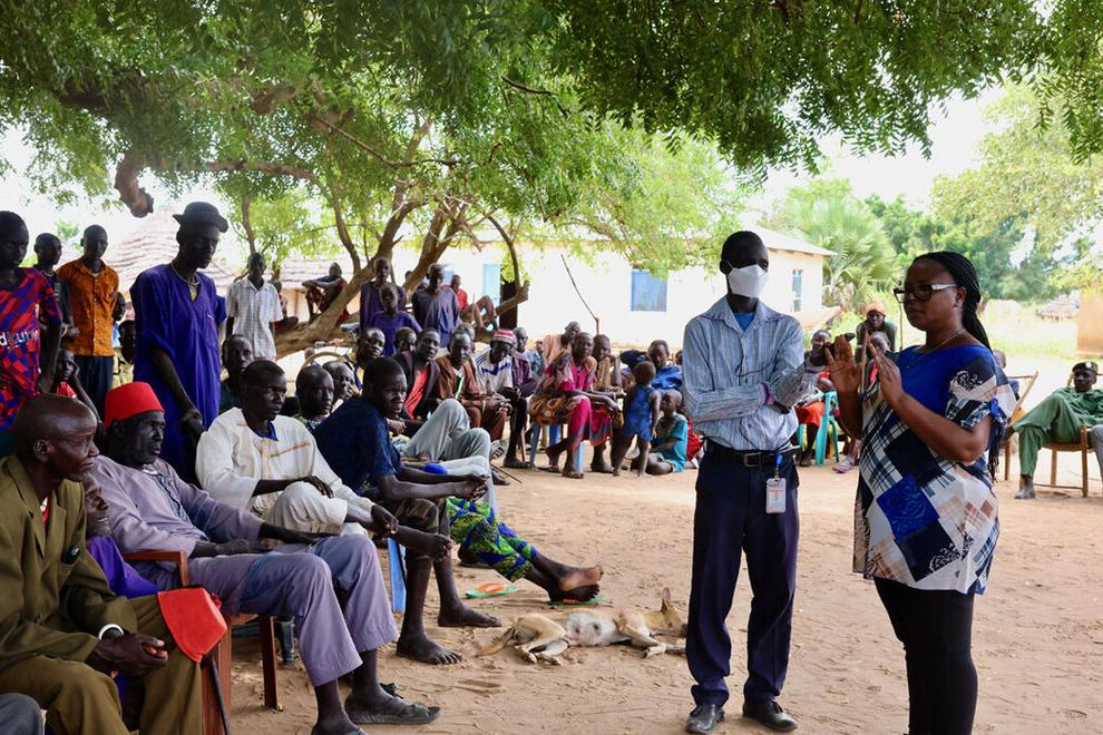 UNMISS and Warrap state authorities recently visited conflict-ridden Tonj to listen to concerns raised by feuding communities and urge for peaceful reconciliation of disputes. Photo by Zejin Yin/UNMISS.