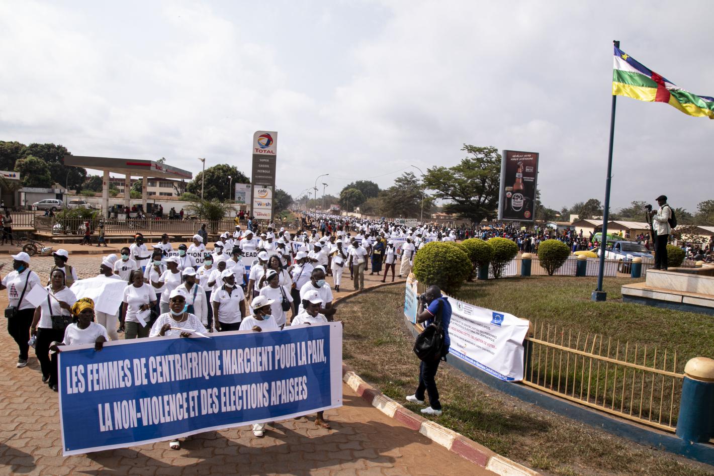 Hundreds of women peacefully marched through the main streets of the Central African Republic’s capital Bangui today to demand for inclusive, violence-free elections. “ All we want is peace,” sang the participants who donned…