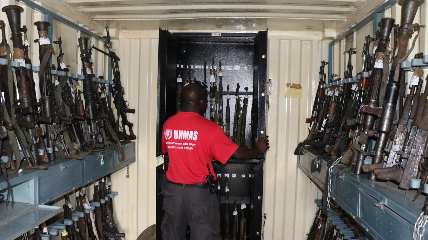 The resurgence of armed conflict since 1996 has displaced thousands across the Democratic Republic of the Congo (DRC) and resulted in proliferation and misuse of small arms and light weapons (SALW), which remains a serious concern. The trafficking, accumulation, and misuse of SALW and related ammunition pose a systemic and pervasive threat to peacebuilding and hampers long-term socioeconomic development. Installation of weapon storage solutions as well as the provision of WAM training, as implemented by UNMAS, is helping to improve the security situation in the DRC.