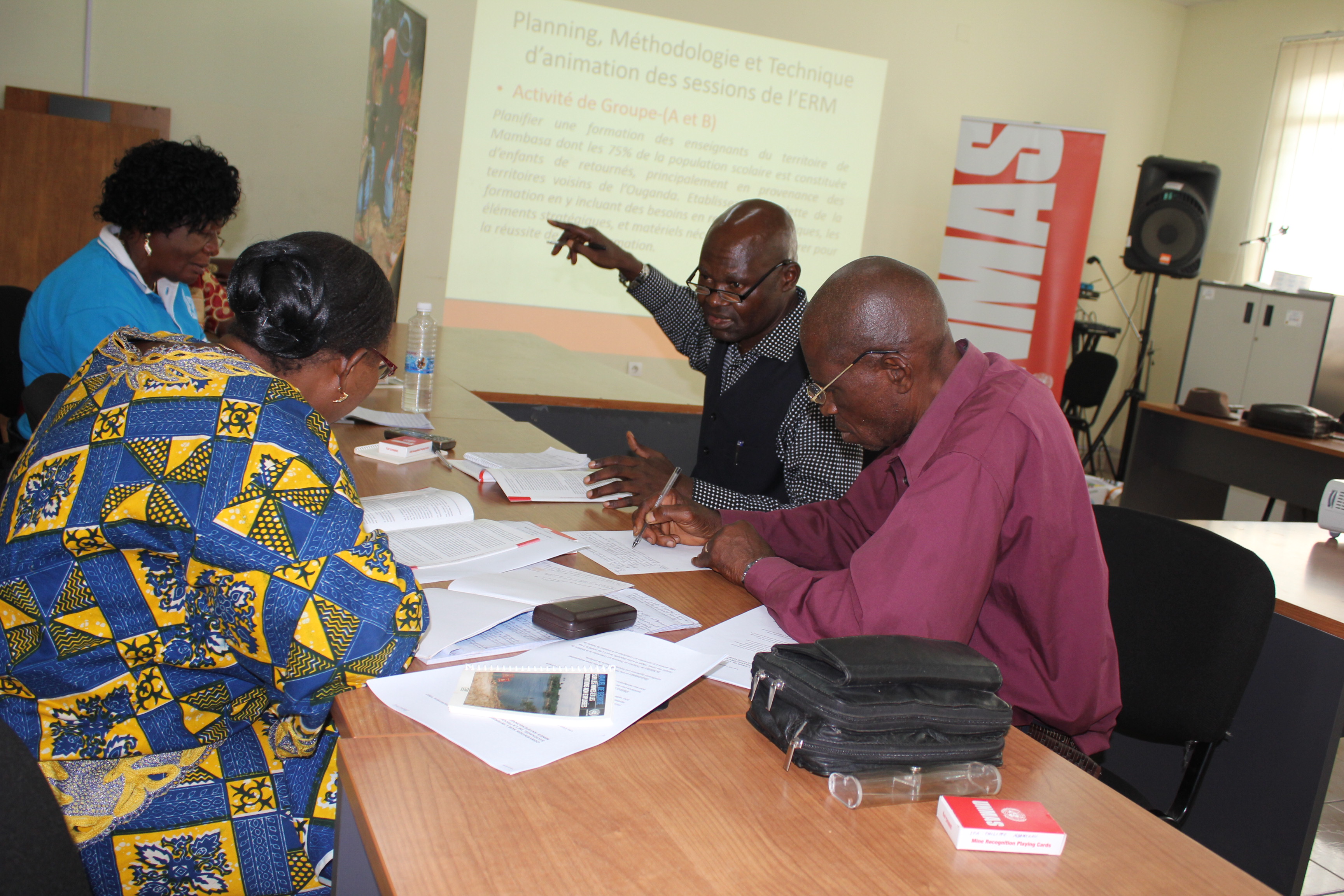 Due to the size of the country and number of schools, the UNMAS-DRC programme is building a pool of national experts who can train teachers around the country. An important group of trainers, National Education Inspectors, participated in a three-day Training of Trainers on Risk Education session recently in Kinshasa.