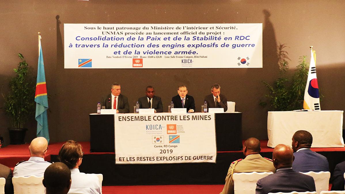The presence of mines, cluster munitions and explosive remnants of war (ERW) continues to pose a great threat to civilians in the Democratic Republic of the Congo (DRC). To mitigate the risks associated with explosive devices, the Korean Agency for International Cooperation (KOICA) provided a generous support of USD 2.6 million to UNMAS for the 2018 to 2019 period. This funding will enable UNMAS to continue to support the DRC government in its efforts of protecting civilians, particularly in the Eastern part of the country which is exposed to the dangers of explosive devices, through its project "Consolidation of peace and stability in the DRC through the reduction of explosive devices and armed violence". The official launching ceremony of this project took place on Friday, 15th of February 2019 at the Sultani Hotel in Kinshasa in presence of the Vice-Minister of Interior and Security, the Ambassador of the Korean Republic, the KOICA Country Director and UNMAS Programme Manager in the DRC.