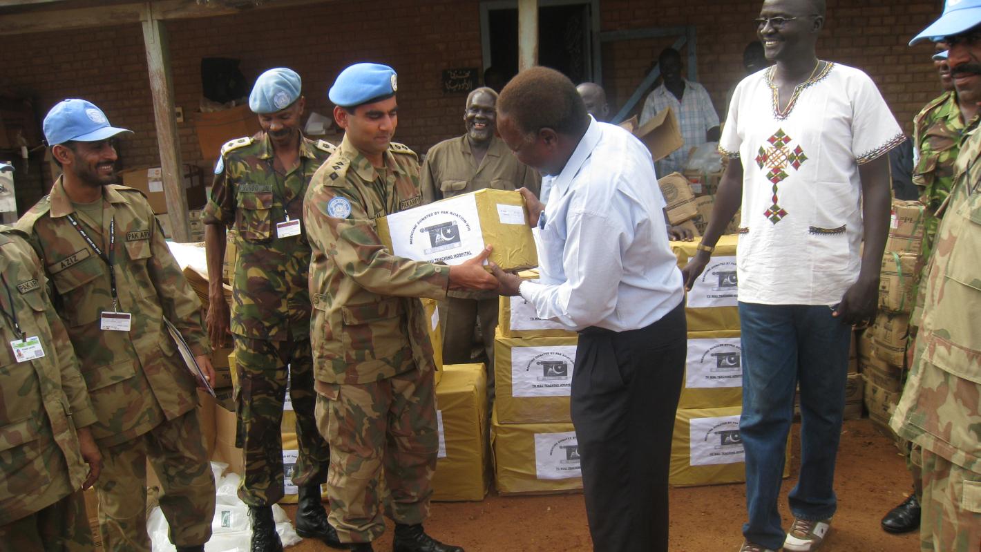 The donation consisted of 150 cartons of intravenous drips and 13 cartons of medicine. UNMIS Pakistani Aviation and Chinese Engineering Units had made a similar donation, worth $4,000, to the hospital in July.