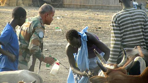 Part of a force protection unit on long duration patrol, the veterinary team treated 1,570 cattle, sheep, goats and donkeys in Tonga region of Panikyang County.