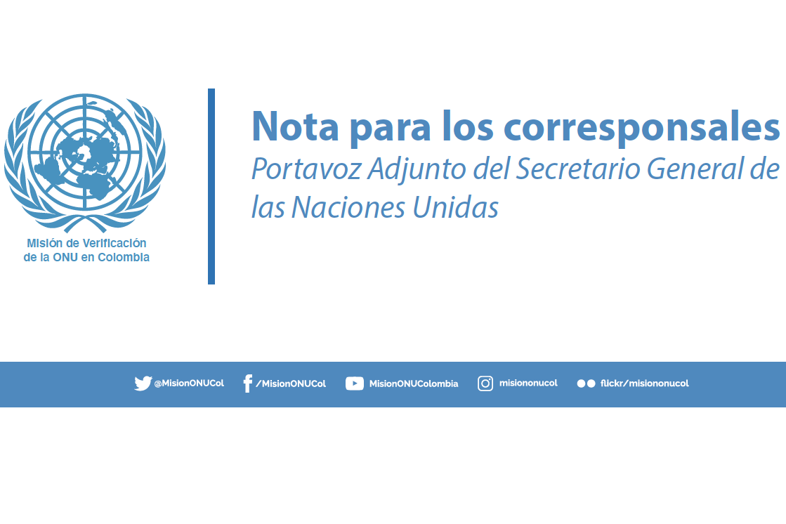 FALLECE VOLUNTARIO DE LA MISIÓN DE NACIONES UNIDAS EN COLOMBIA Bogotá, julio 15 de 2020. La Misión de las Naciones Unidas en Colombia lamenta profundamente el fallecimiento el día de hoy de un colega voluntario en San Vicente…