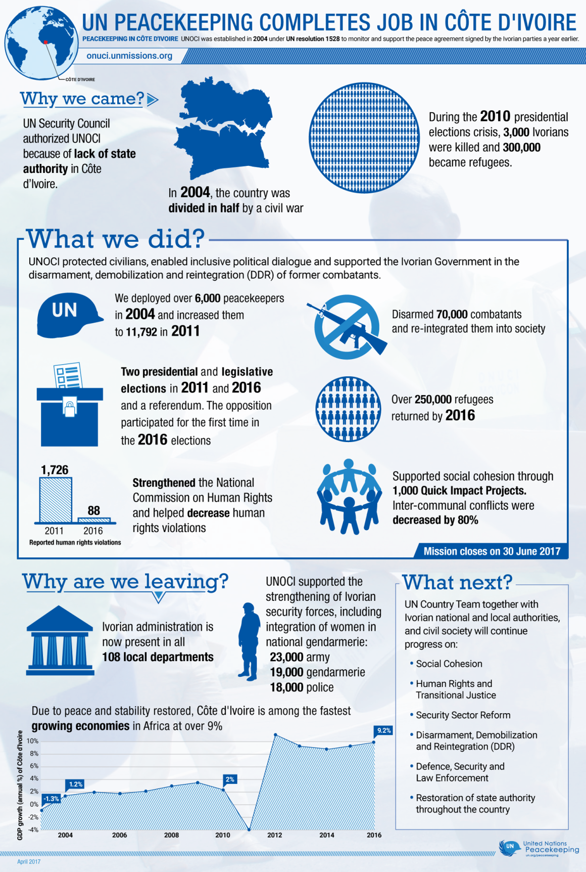Una historia reciente: La Operación de las Naciones Unidas en Côte d'Ivoire completó su mandato satisfactoriamente el 30 de junio de 2017