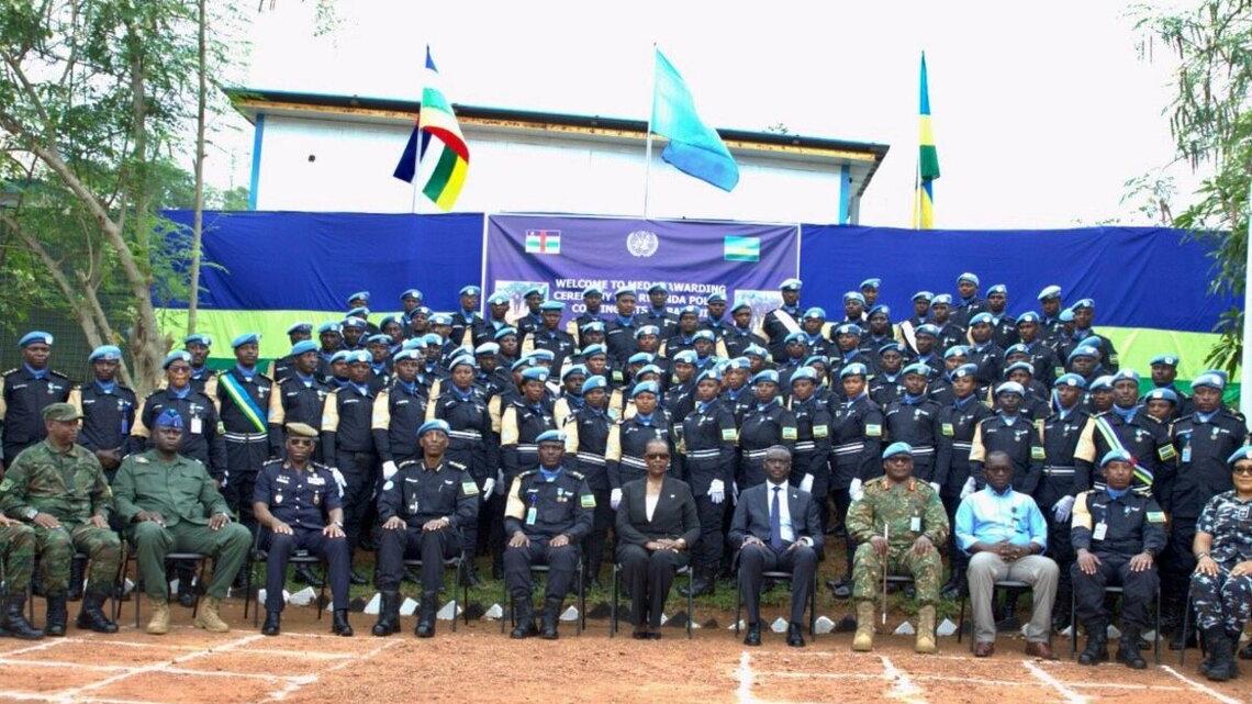 Une cérémonie officielle s’est tenue à Bangui, le 25 avril 2025, pour honorer 313 membres du contingent rwandais déployés au sein de la MINUSCA. Il s’agit des éléments des unités de police constituées (FPU), des unités de soutien de la police (PSU) ainsi que des officiers de police (IPO), engagés depuis mai 2024. Ils ont reçu la médaille des Nations Unies en reconnaissance de leur dévouement, de leur professionnalisme et de leur intégrité sur le terrain.