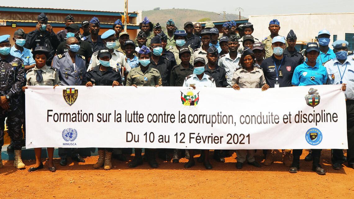 Afin de contribuer à la lutte contre la corruption au sein des Forces de sécurité intérieures (FSI), la Police de la MINUSCA (UNPol), conformément à son mandat, a organisé, du 10 au 12 février 2021, un atelier de renforcement de capacités, au bénéfice de 50 membres du personnel de la Police et de la Gendarmerie centrafricaines.