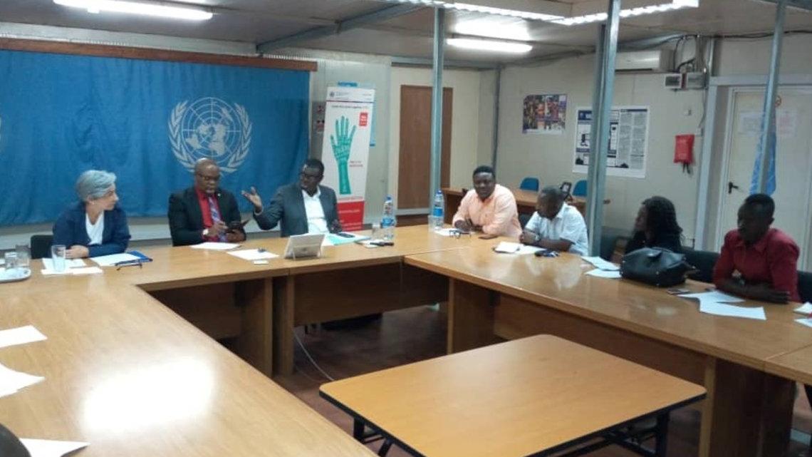 Rencontre entre le Directeur du BCNUDH, Abdoul Aziz Thioye, et les autorités locales et la population de Bunia le 15 janvier 2020. Photo MONUSCO/Jean-Tobie Okala