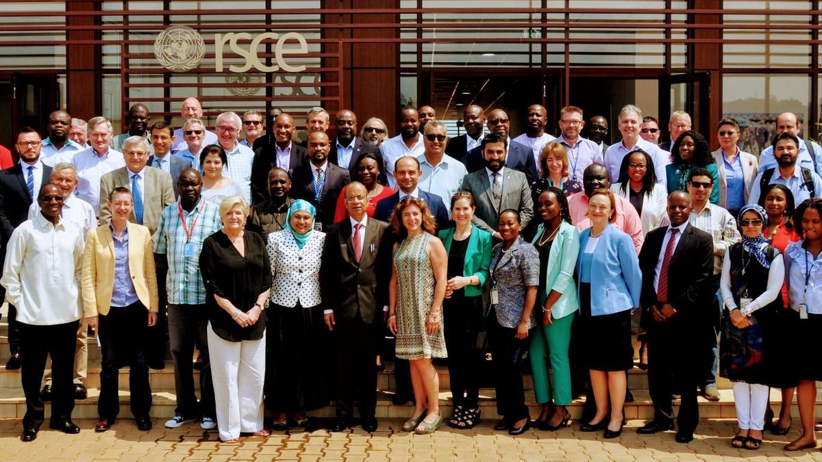 Photo prise le 04 juillet 2017 à Entebbe (RSCE) lors des assises entre le Sous-Secrétaire Général Mr. Atul Khare (au milieu) avec les Représentants du Personnel Local de toutes les Missions ainsi que Mme Chhaya Kapilashrami (Directrice FPD), Mme Bibi Khan (Présidente UNSU) et les DMS et CMS de l’Organisation