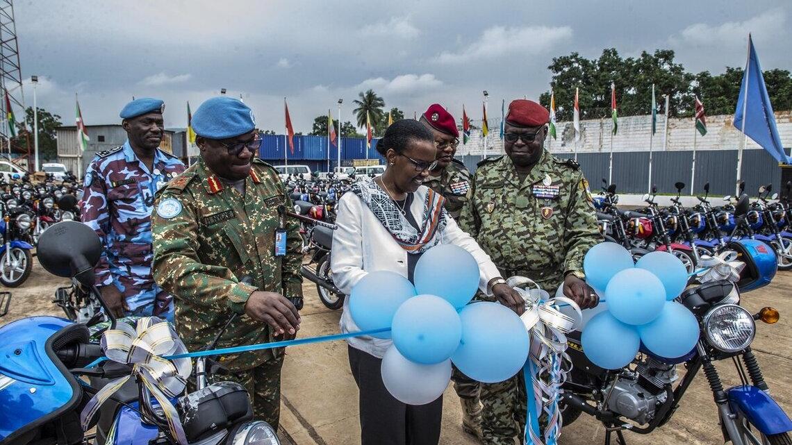 La remise a été faite par la Cheffe de la Mission, Valentine Rugwabiza, au Général de corps d’armée Bruno Léopold Izamo, représentant le ministre centrafricain de la Défense à cette cérémonie. Cette flotte de 150 motos est destinée à renforcer les capacités opérationnelles de protection des FACA, avec à la clé une meilleure couverture du territoire et une plus grande mobilité pour protéger les civils, particulièrement dans les localités qui sont inaccessibles aux véhicules à quatre roues.