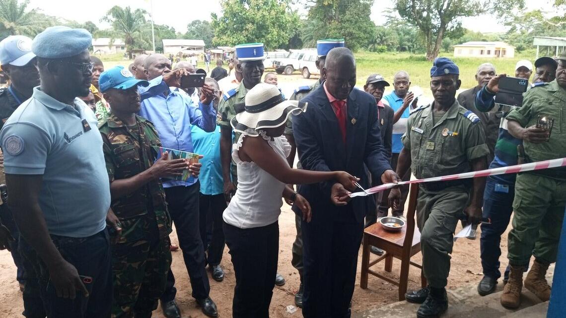 Il s’est réjoui de la construction de ce nouveau bâtiment et a remercié la MINUSCA « pour avoir financé ce projet, permettant ainsi à la Brigade de Bambio de disposer de chambres de sûreté et de réduire les infractions récurrentes dans la localité ».