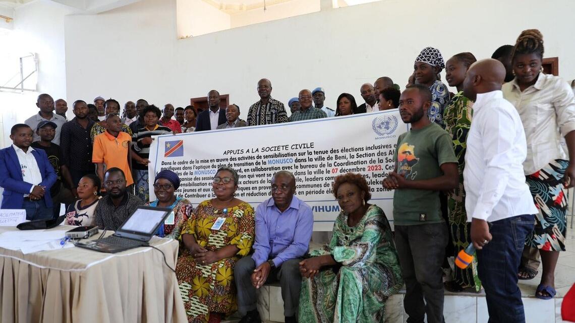 A une douzaine de jours de la tenue des élections générales en République démocratique du Congo, la section des Affaires civiles du bureau de la MONUSCO à Beni a organisé une série d’ateliers de sensibilisation à la prévention et à la réduction des violences en période électorale.
