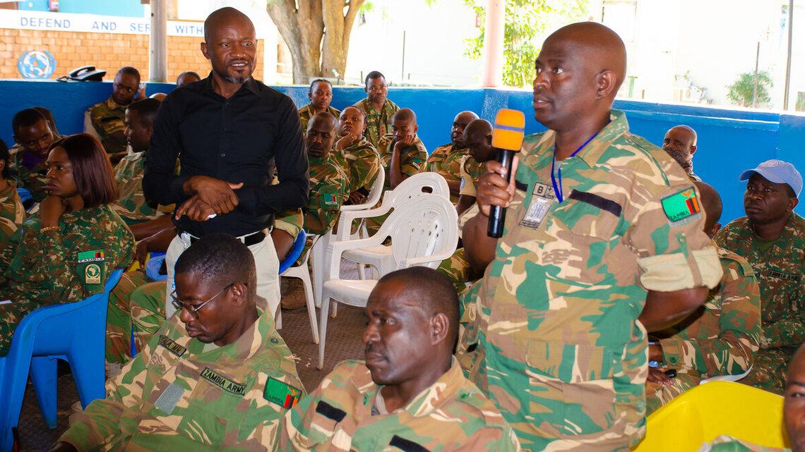 Geoffrey Kounkuta, du 10ᵉ contingent zambien, a déclaré : « Cette formation nous a rappelé notre responsabilité en tant que Casques bleus. Nous sommes appelés à accomplir notre mission avec professionnalisme. Il nous est interdit de demander des faveurs sexuelles aux communautés locales. Il nous a été rappelé aussi que nous ne devons pas avoir d’intimités avec des mineures ».