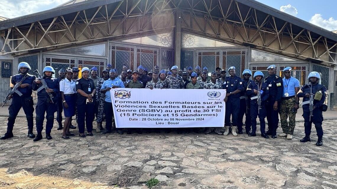 A Bouar (Nana-Mambéré) une trentaine de policiers et gendarmes, dont huit femmes, prennent part jusqu’au 8 novembre prochain à une formation de formateurs sur les violences sexuelles et basées sur le genre organisée par la Police de la MINUSCA. Cette formation vise à renforcer leurs compétences pour mieux gérer les cas de violences sexuelles, lutter contre l’impunité et offrir une réponse adaptée aux victimes.