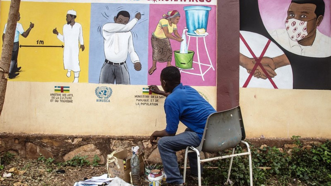 Pour contribuer à la lutte, contre cette pandémie, le Ministère des arts, de la culture et du tourisme, en partenariat avec la MINUSCA, a initié des actions en vue de sensibiliser la population centrafricaine, dans les espaces publiques, à travers les radios et la télévision centrafricaine sur les gestes barrières à appliquer pour éviter la contamination.