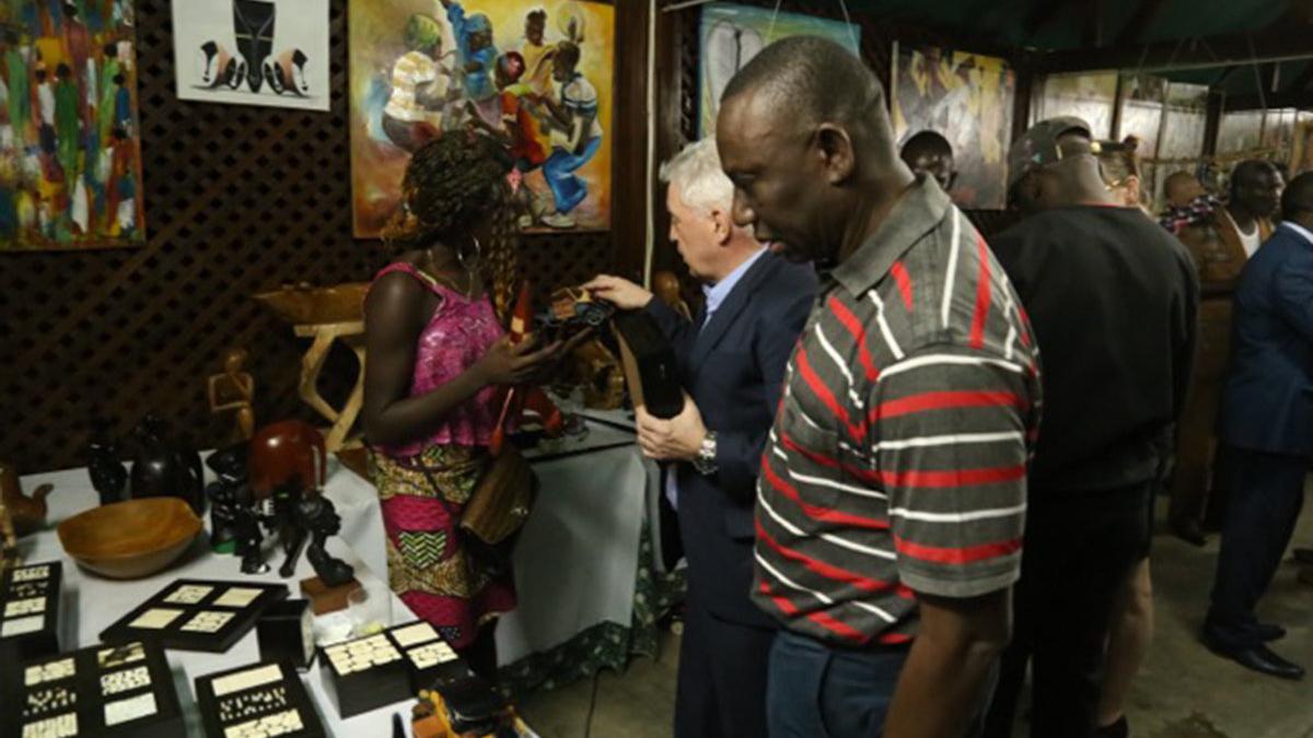 La résidence du Représentant spécial du Secrétaire général des Nations Unies et Chef de la MINUSCA, Parfait Onanga-Anianga, a servi de cadre, le samedi 30 septembre 2017, à la quatrième édition du « Bitsi’Art » (la Nuit des Arts, en langue locale Sango), une exposition d’art itinérante organisée par l’association BE AFRIK’ART, qui regroupe près de 70 artistes et artisans centrafricains. Dans une ambiance décontractée, les amoureux de l’art, au nombre desquels plusieurs personnalités du monde diplomatique, des membres du gouvernement, des hauts cadres nationaux et internationaux, se sont réunis, le temps d’une soirée, autour de plus d’une centaine d’œuvres dans les domaines de la sculpture, la peinture, la marqueterie, la poterie, l’ébénisterie, la vannerie, entre autres. Pour l’hôte de cette exposition, Parfait Onanga-Anyanga, l’objectif de cette soirée est de « célébrer l’art, qui lui-même n’est rien d’autre que pure célébration de la vie ». En effet, a-t-il rappelé, l’art a toujours fait partie intégrante du vécu. Soit pour l’exorciser de ses impuretés, soit pour le sublimer, ou encore pour le représenter. C’est la raison pour laquelle l’on pourra dire que « l’art ne reproduit pas le visible, mais il rend visible l’invisible », a soutenu le chef de la MINUSCA, paraphrasant l’artiste peintre suisse-allemand Paul Klee. « Nous avons choisi les domaines de l’art et de l’artisanat, nos passion et notre travail, pour contribuer à notre manière au retour de la paix, de la réconciliation en Centrafrique. À travers nos œuvres, nous semons les valeurs que nous voulons voir émerger demain », a pour sa part soutenu le président de l’association BE AFRIK’ART, Davy Bitsiboulou. Ainsi, en ciblant les dirigeants, hauts cadres nationaux et internationaux, Be Afrik’art espère faire entendre son message dans les plus hautes sphères de décision du pays. « Nous avons aussi un rôle à jouer, et nous voulons le jouer », a-t-il, par ailleurs indiqué. Créée en 2009, l’association Be Afrik’art regroupe des artistes et artisans centrafricains qui n’avaient pas d’endroit pour exposer leurs œuvres. Elle possède une galerie éponyme, à Bangui, qui sert de vitrine aux créations de ses 70 membres.