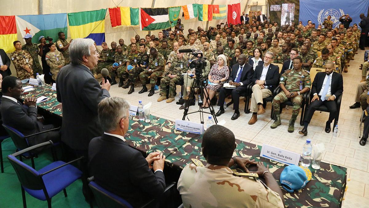 Le Secrétaire général des Nations Unies,Antonio Guterres, a rencontré, ce 26 octobre 2017, en milieu d’après-midi, tout le personnel en uniforme, policiers et militaires, de la MINUSCA au camp de la Mission à M’poko, à proximité de l'aéroport de Bangui.