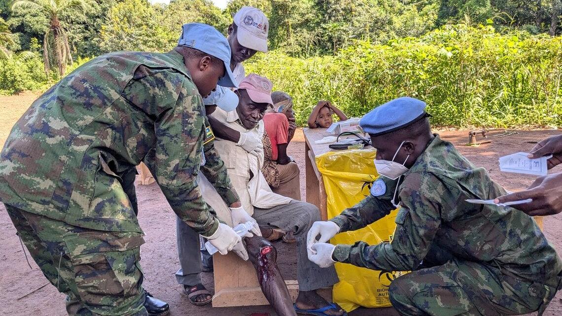 Près de 140 personnes, principalement des femmes, des jeunes, des personnes âgées et des enfants, ont récemment bénéficié de soins à Bambouti (Haut-Mbomou), dispensés par l’équipe médicale du contingent rwandais de la MINUSCA. La majorité des patients ont été testés positifs au paludisme, et la quasi-totalité des enfants présentaient des signes de malnutrition. Des services de médecine générale, d'ophtalmologie et de dentisterie ont également été offerts.