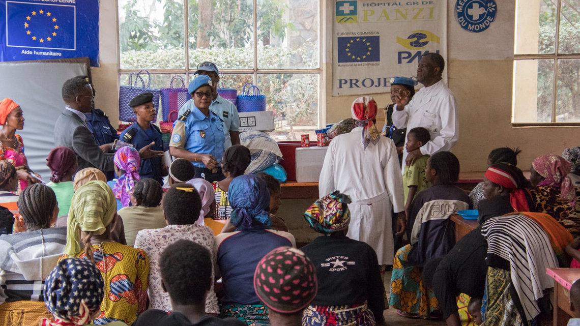 C’est le Docteur Denis Mukwege lui-même qui, au nom des victimes, a réceptionné le don et a remercié la MONUSCO et la PNC à travers les unités descendues sur le lieu. Au passage, il a salué les autres actions menées par UNPOL, notamment les patrouilles organisées au quotidien pour assurer la sécurité dans la ville, et surtout dans le quartier Panzi où se trouve l’hôpital.