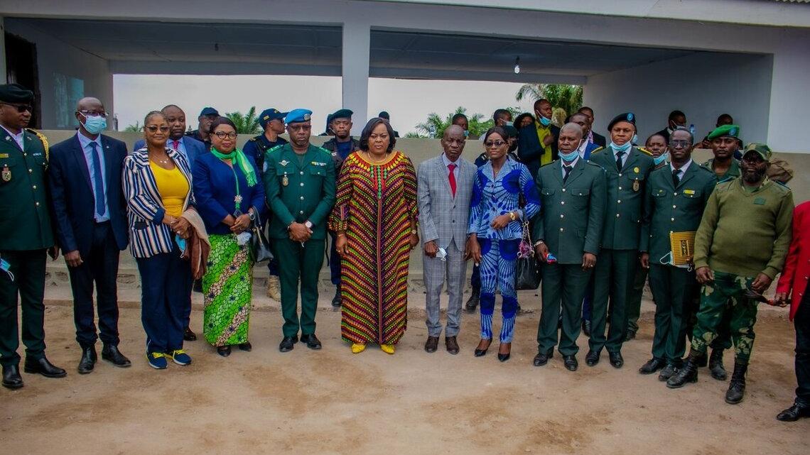 La ministre de la Justice Garde des Sceaux, Rose Mutombo en compagnie du chef de la composante Police de la MONUSCO, le général Mody Berethe, a procédé le 13 aout 2021, à l’inauguration du Centre de formation du personnel pénitentiaire de Luzumu.