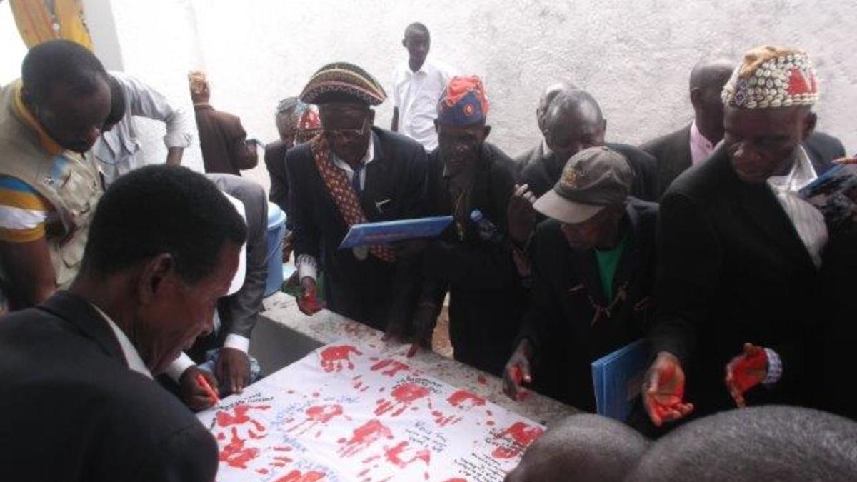 La formation a pris fin avec la collecte «des mains rouges» pour démontrer l'engagement des participants à la sensibilisation pour lutter contre le recrutement et l'utilisation des enfants dans les milices dans la province du Kasaï.