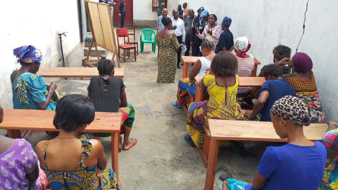 L’administratrice du territoire d’Uvira, Madame Malenga Sango Julie, s’adresse aux femmes détenues de la prison d’Uvira juste après le lancement du programme des cours d’alphabétisation des femmes détenues initié par la section d’appui à l’administration pénitentiaire. Photo MONUSCO/Papa Modou Diouf