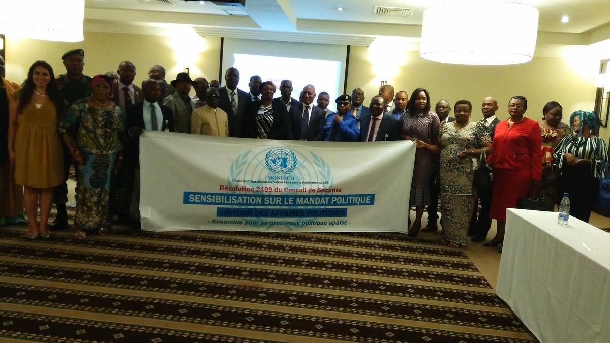 Lubumbashi, le 16 mai 2018- La Division des Affaires politiques de la MONUSCO a organisé les 15 et 16 mai à Lubumbashi, des séances de sensibilisation sur le nouveau mandat de la Mission, repris dans la Résolution 2409 du Conseil de Sécurité des Nations Unies.