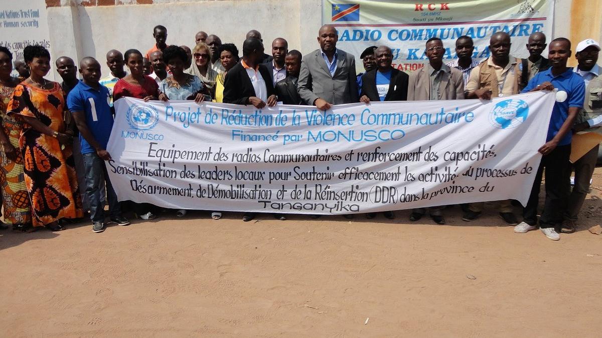 La mise en œuvre des projets RVC ont suscité beaucoup d’enthousiasme dans Nyunzu. Le symbolisme de la cérémonie de lancement a eu lieu dans les locaux de la Radio communautaire RCK équipée en partie sur fonds des projets RVC. L’Administrateur du territoire de Nyunzu et le Chef de Bureau de la Monusco a.i. de Kalemie ont coupé comme de coutume le ruban d’inauguration.