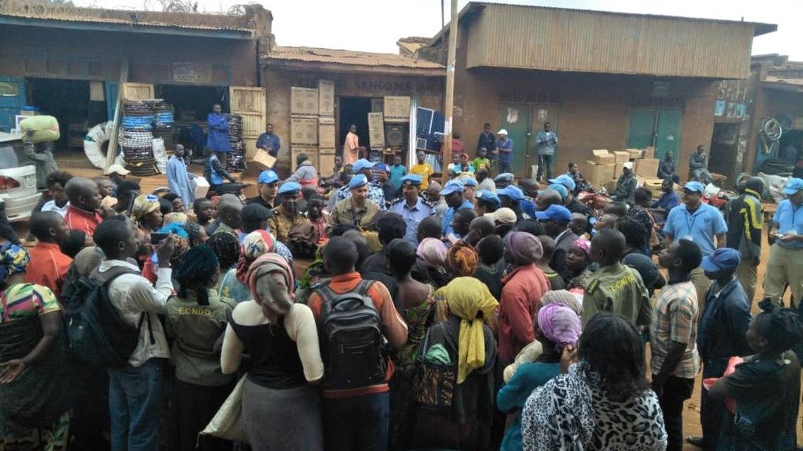 Après cette séance de sensibilisation, l’opération de nettoyage a débuté au marché central de la commune de Bulengera.