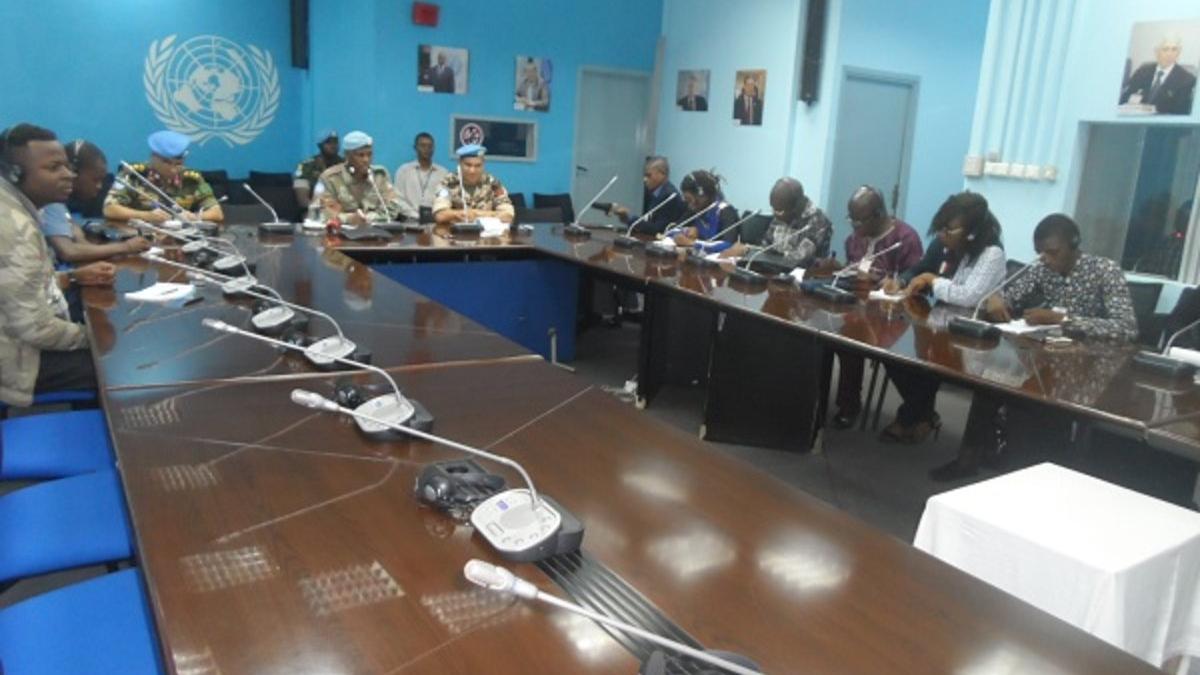 Kinshasa – le 19 janvier 2018. En marge des activités marquant la fin de son mandat à la tête de la Force de la MONUSCO, le Lieutenant-Général Derrick Mbuyiselo Mgwebi, a tenu une conférence de presse au quartier général de la MONUSCO à Kinshasa, à laquelle une vingtaine de journalistes des médias locaux et internationaux ont participé.