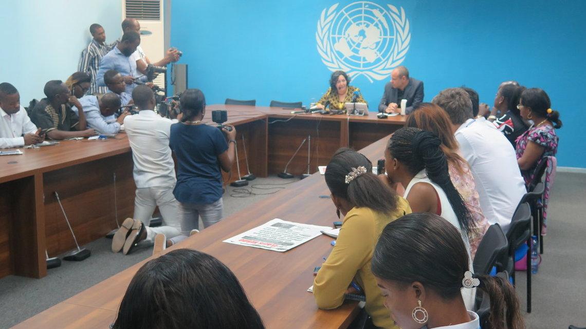 Première conférence de presse pour l'année 2020 de la Représentante spéciale du Secrétaire général des Nations Unies en République démocratique du Congo, Leila Zerrougui, au quartier général de la MONUSCO à Kinshasa. Photo MONUSCO/Ascain Zigbia-Tayoro
