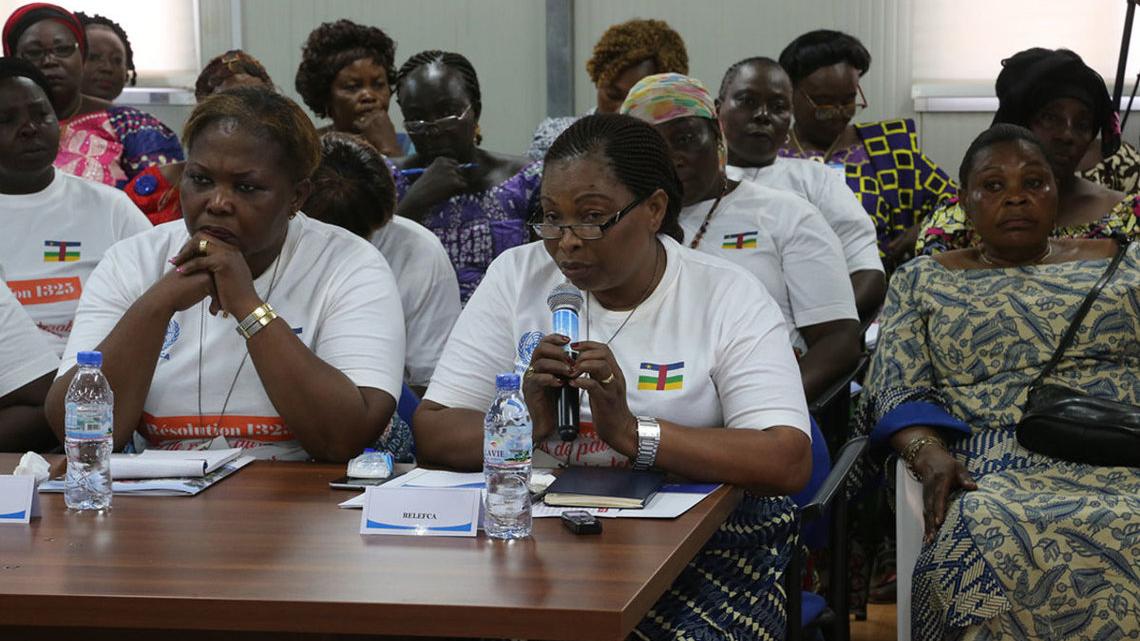 « Il n’y a pas de paix sans les femmes. Vos voix sont la voie de la sagesse », fait valoir le Représentant spécial du Secrétaire général des Nations Unies, Parfait Onanga-Anyanga, pour souligner l’importance du rôle de la femme dans la recherche et le maintien de la paix et la sécurité. Une affirmation faite, le 22 novembre 2018 à Bangui, à l’intention des femmes leaders de la plateforme d’organisations féminines dont l’Organisation des Femmes de Centrafrique (OFCA), du Réseaux pour le Leadership de la Femme en Centrafrique (RELEFCA) et du Réseau des Femmes Africaines Ministres et Parlementaires (REFAMP) réunies lors d’une table ronde sur l’analyse de l’implication des femmes centrafricaines dans la résolution de la crise.