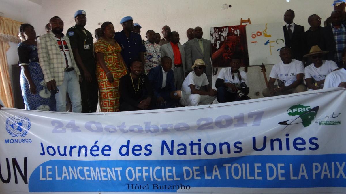 La « Toile de la Paix » a été officiellement lancée, ce mardi 24 octobre 2017, jour de la célébration de la Journée des Nations Unies, lors d’une cérémonie qui s’est déroulée à Butembo, située à 55 kms au sud de Beni. Plus de 300 personnes, y compris, les autorités de la ville, les différentes Sections de la MONUSCO-Butembo et les acteurs de la Société civile, ont participé à cette grande activité culturelle et artistique. Cérémonie ponctuée de chants, contes et poèmes ainsi que de la projection d’un film dédiés à la Paix.