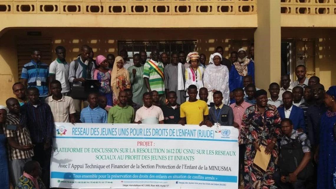 Avec l’appui technique et financier de la MINUSMA, le Réseau des Jeunes Unis pour les Droits des Enfants (plateforme de plus de 60 associations de jeunes et d’enfants) a mis en place une Plateforme virtuelle de discussion sur la résolution 1612 (2005) du Conseil de Sécurité des Nations Unies.