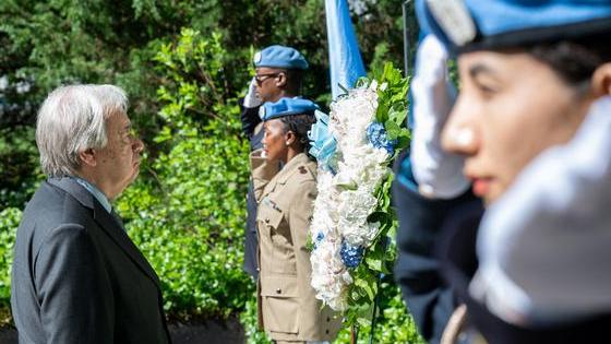 Lors d'une cérémonie, Guterres rend hommage au service et au sacrifice des Casques bleus de l'ONU