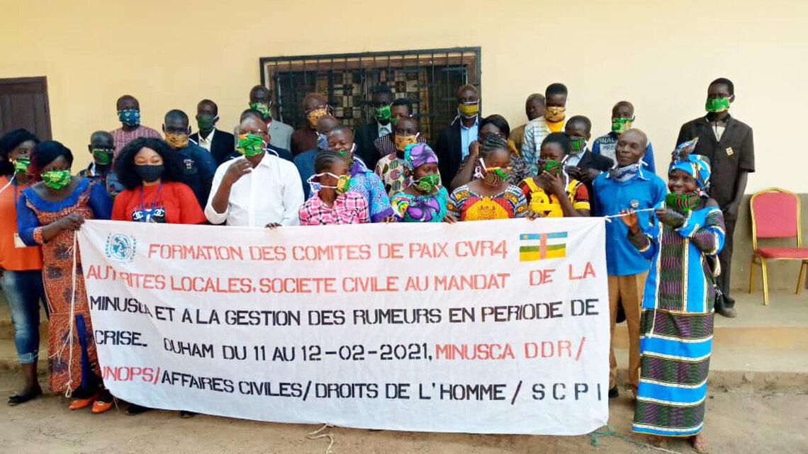 Lutter contre les violences communautaires en période de conflits armés, c’est l’objectif poursuivi par l’atelier de formation organisé, les 11 et 12 février 2021 à Bossangoa, à l’intention de 100 membres des Comités locaux de paix, autorités locales, membres d’associations féminines, journalistes, enseignants et représentants de groupes armés, dans le cadre du Programme de réduction de violence communautaire (CVR) de la MINUSCA.